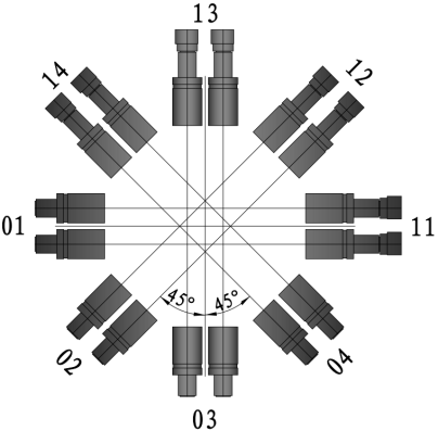 每组测头由一个发射端和一个接收端组成