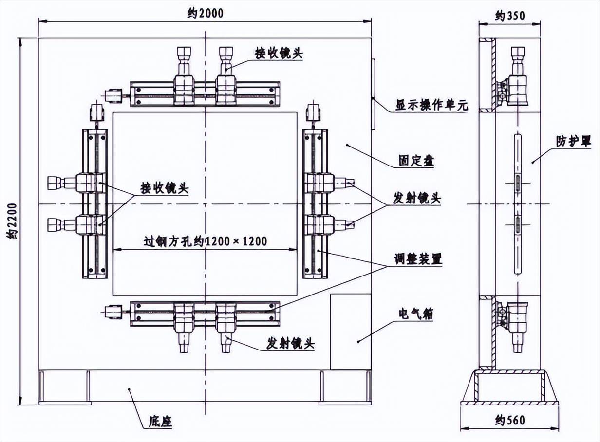 发射测头与接收测头布置间距大,超大的过钢空间搭配冷却系统,可有效隔绝高温被测物热量。