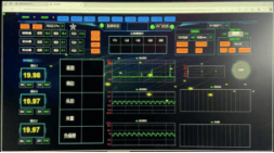 主控室液晶显示器:管材截面的最大/最小直径、平均值、椭圆度;螺纹钢基圆、纵肋、横肋、米重、负偏差、错辊等实时测量值;各路测头的分项测量值;设定的钢管长度、速度、标称直径、上下公差等;尺寸波动趋势预报(输入钢管长度和速度后可以对应外径在管材的位置),缺陷分析曲线。