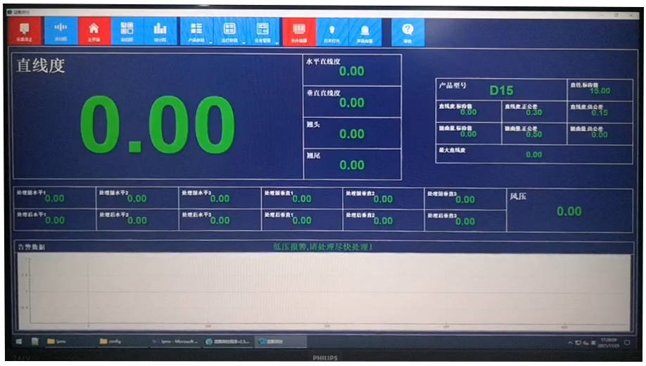 设备主要用于金属棒材、管材、陶瓷管材等产品需要在线快速测量直径和直线度检测,设备采用单台采集模块,占用空间小,适用于安装空间相对较小的工况,可实时显示产品通过后的整体直线度数据,搭配测速测长仪可精确测量被测物实时长度及任意长度直线度偏差。控制柜段电脑显示:实时直径测量值,椭圆度数值;显示整根直线度数据;两端及中间直线度数据。
