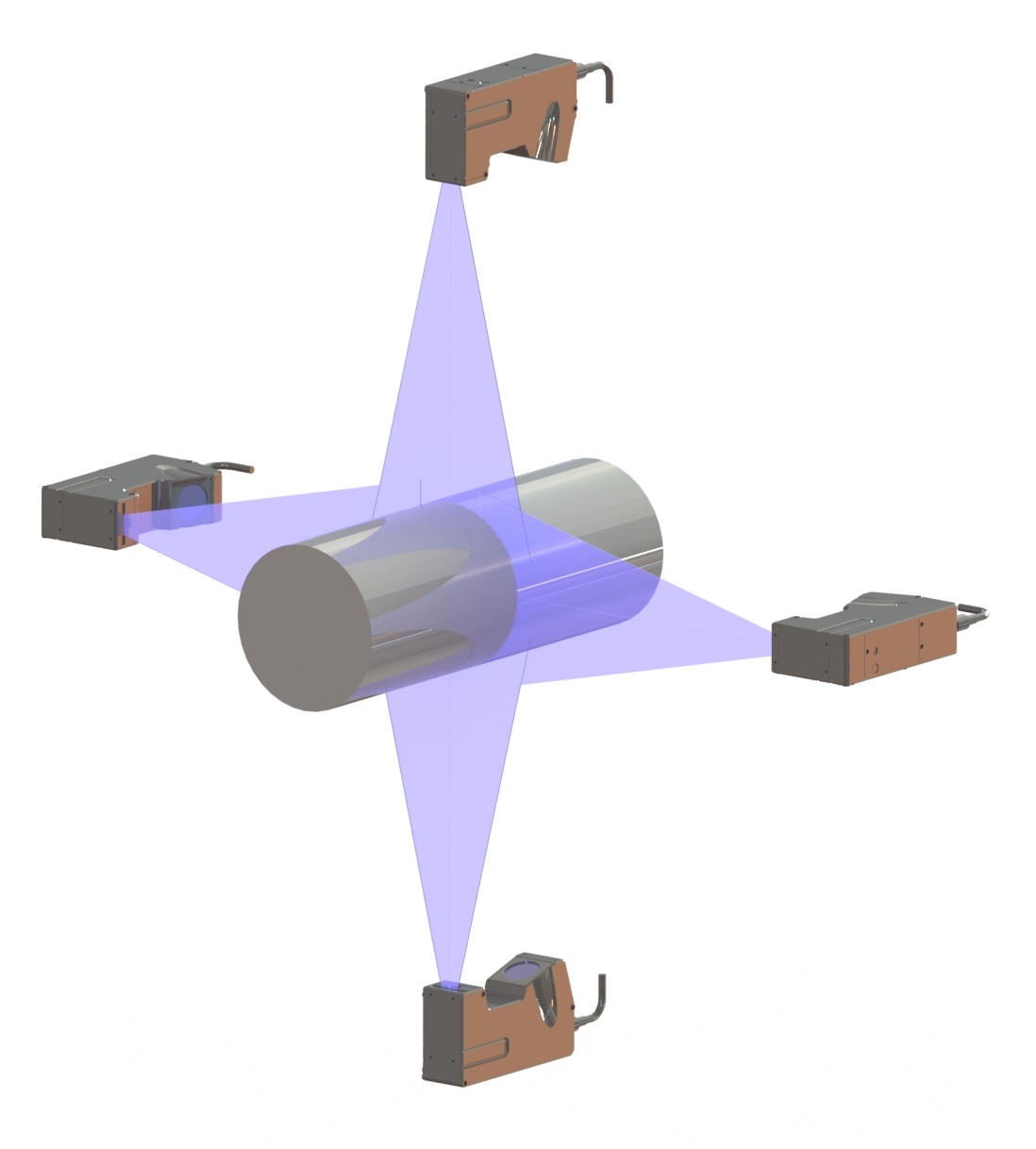 蓝鹏轮廓测量仪采用均布的4只二维激光测量传感器测量轧材截面,4只传感器包容轧材整个截面,真正做到无盲区测量。