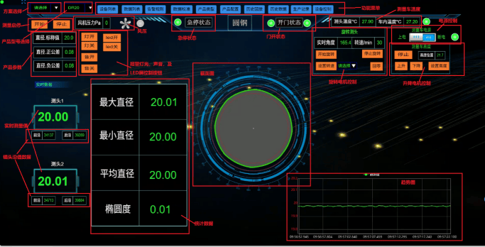 主控室液晶显示器:实时显示螺旋焊管的直径、周长、椭圆度偏差。